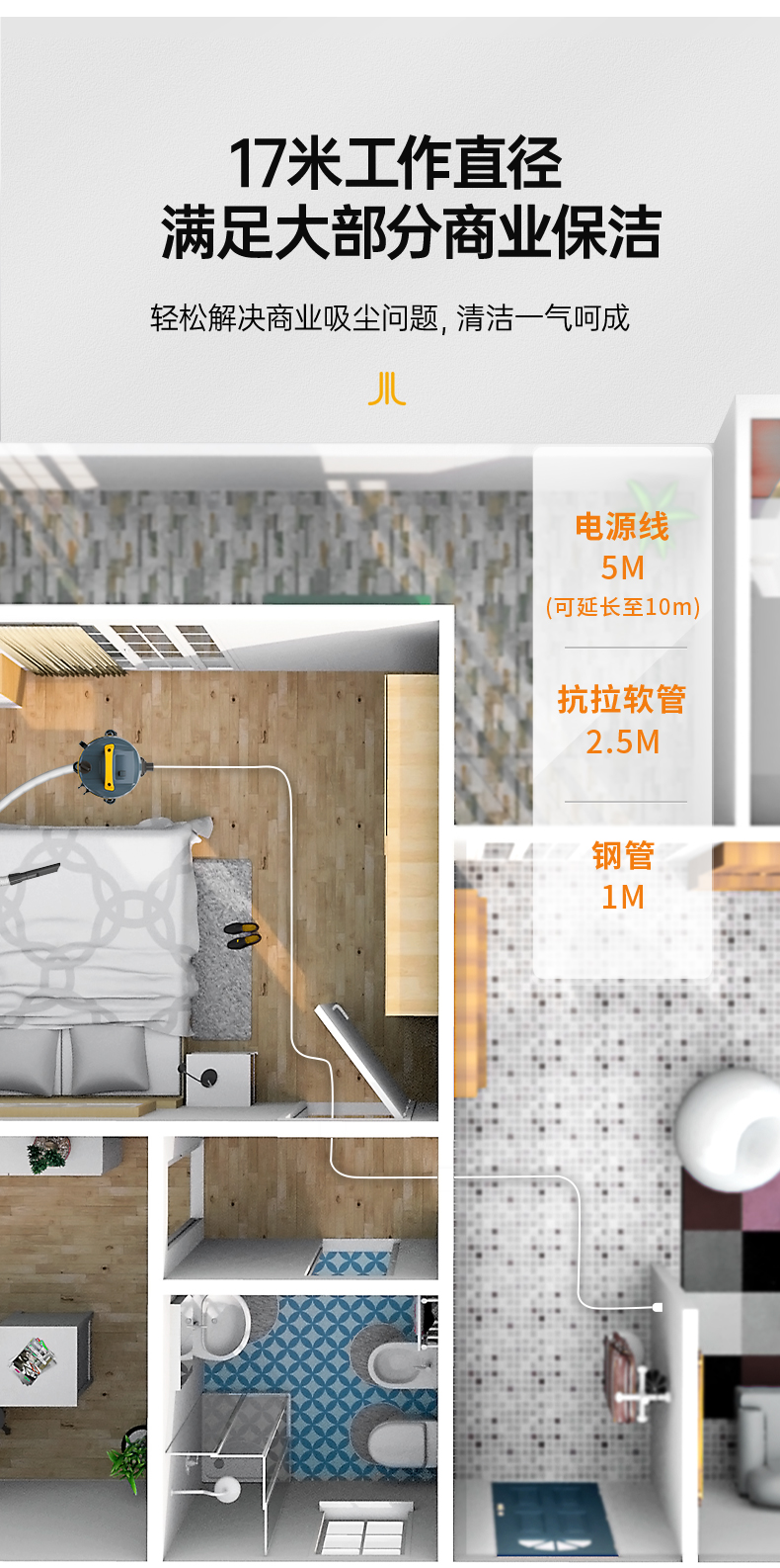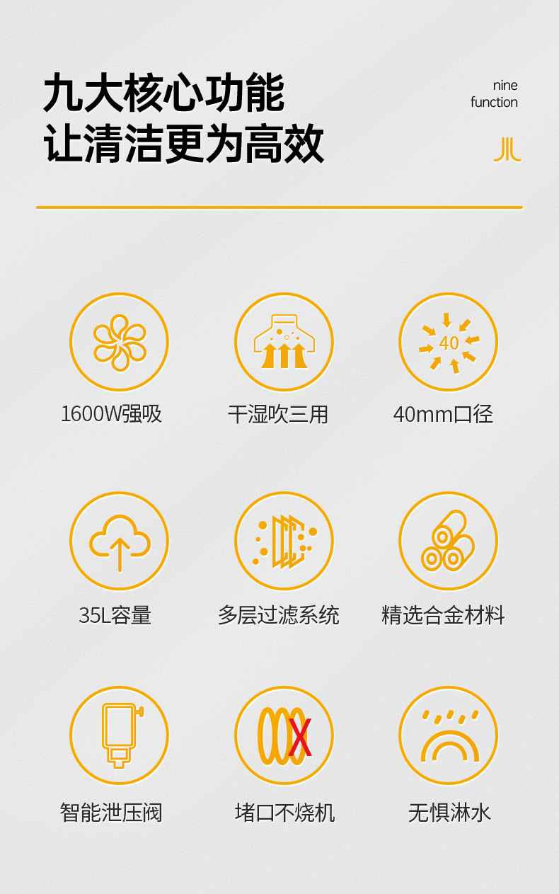 橙犀吸塵器 CRS-1635:升級40mm大口徑進(jìn)風(fēng)口,吸力更大清潔更快,還搭配了抗扭軟管,即時暴力扭曲也能快速復(fù)原。吸干凈為止,不燒機(jī)!